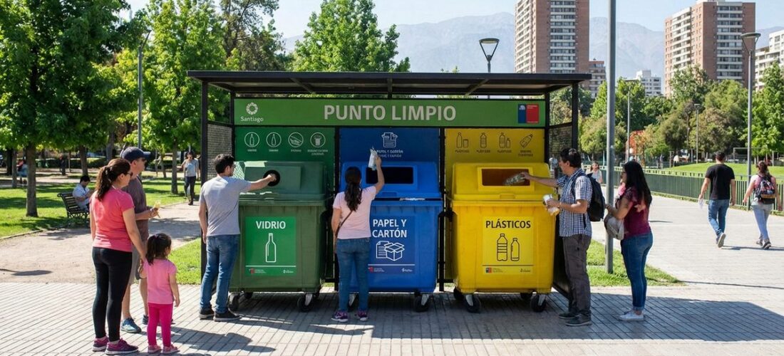 Red de puntos limpios de reciclaje en 18 comunas de Santiago con educación ambiental.